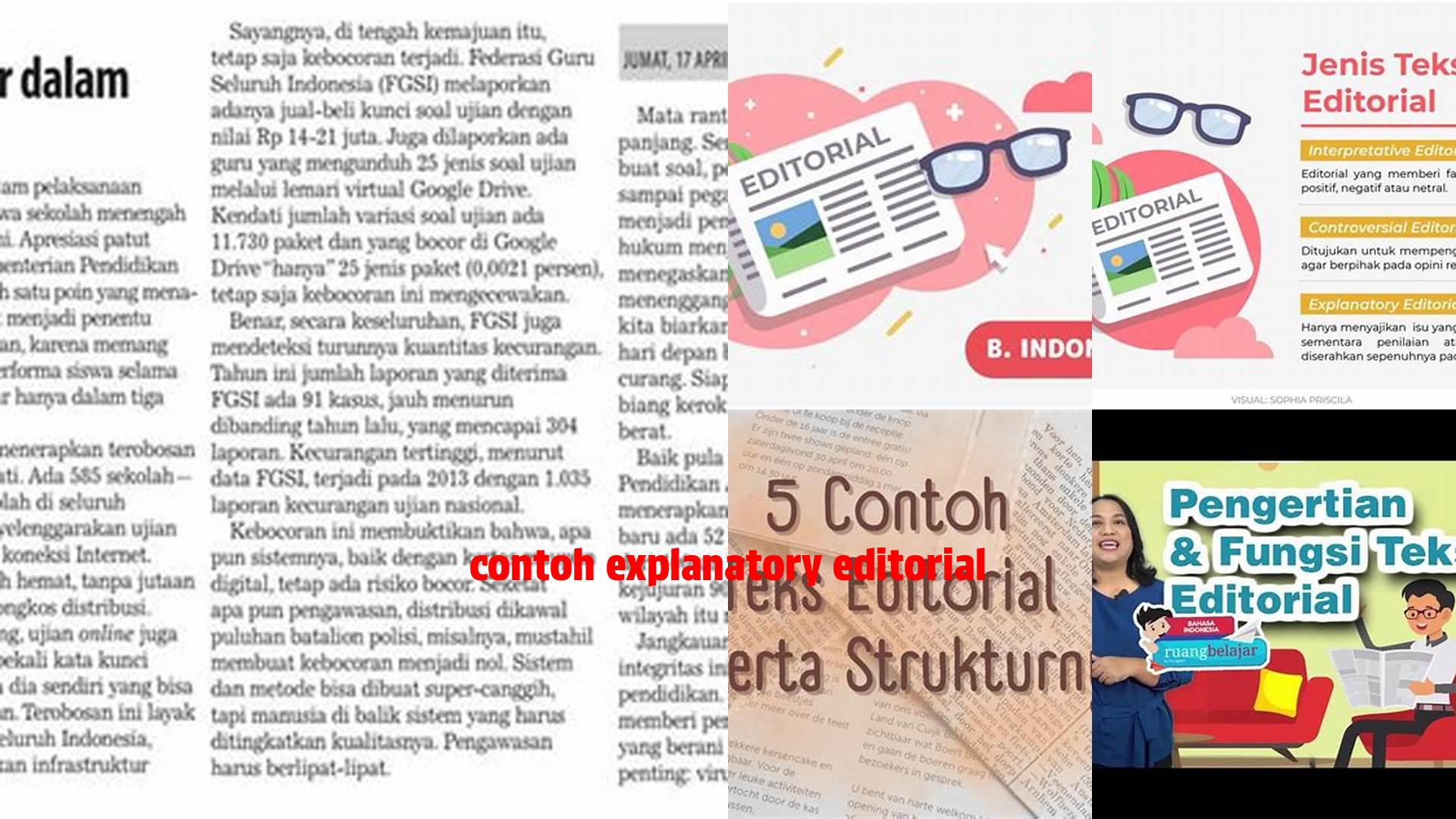 Contoh explanatory editorial adalah artikel opini yang bertujuan menjelaskan suatu isu secara mendalam dan mudah dipahami pembaca.
