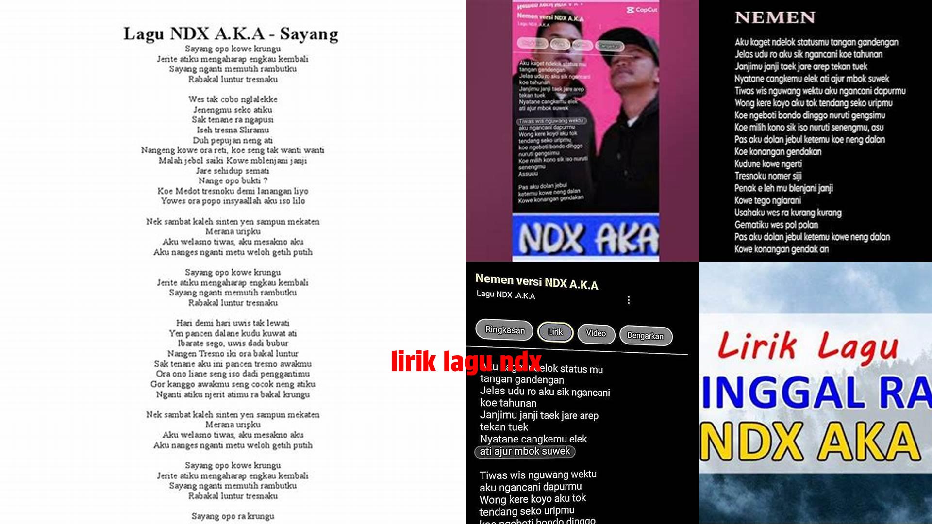 Lirik lagu NDX merupakan bagian penting dari sebuah lagu yang memiliki berbagai aspek penting, di antaranya: